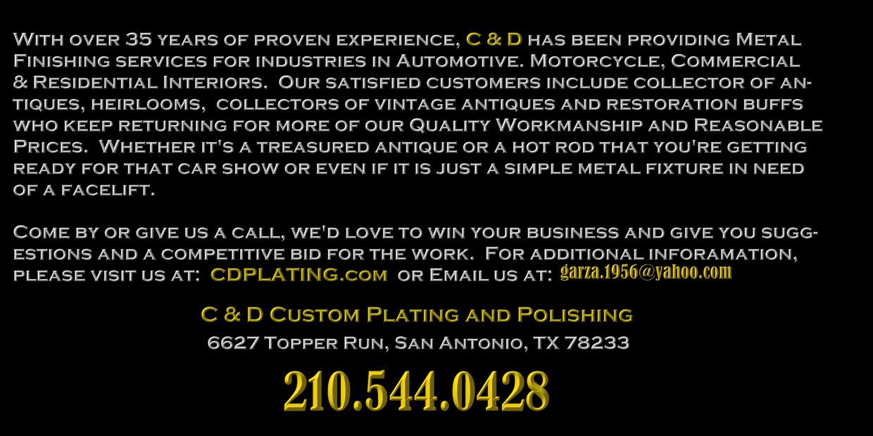 Call on us to beautify that antique car or heirloom part now.